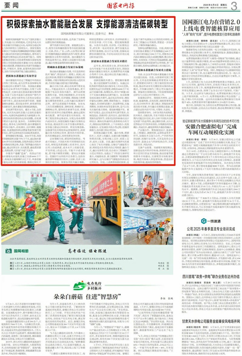 《國家電網(wǎng)報》刊發(fā)國網(wǎng)新源集團董事長郭炬署名文章:積極探索抽水蓄能融合發(fā)展 支撐能源清潔低碳轉(zhuǎn)型